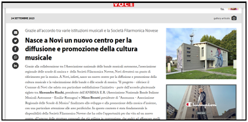 2015 - NOVINFORMA e articolo sul sito del comune inerenti l’inaugurazione delle nuova scuola di musica |